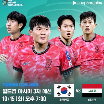 대한민국 축구 국가대표팀은 2026년 FIFA 월드컵 아시아 지역 3차 예선에서 이라크와 맞붙습니다.